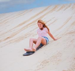 We are a family owned and operated business who love providing our customers with a unique, personal and exciting experience! We cater mainly to families, couples and smaller groups. This means less crowds and more personal service! We offer both sit down and stand up sandboarding styles, with a variety of different boards to choose from. There are different sized hills for all ages and abilities as well as a shaded picnic area where you can sit and relax, or join us for a Tin City or Private Safari. An Unforgettable Sand Dune Experience!