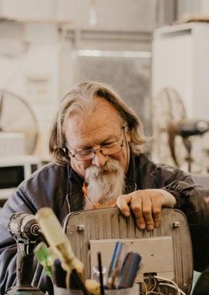 David Sams is in his element surrounded by offcuts and objects in the process of being repaired or repurposed. It’s perhaps no surprise given his upbringing in an era when value was placed on being resourceful and making do with what was available.