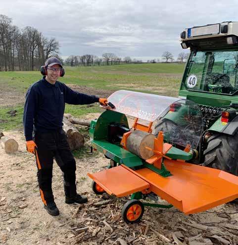 "Aus Groß mach Klein!", wird das POSCHKraftpaket zum Spalten der Kurzholzstämme aus dem Schuppen geholt.