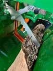 KLEIN IN DER LAGERUNG UND GROSS BEI DER ARBEIT Wenig Lagerfläche? Für eine platzsparende Lagerung und den Transport lässt sich das Messerführungsrohr einfahren und die Holzauflagen können werkzeuglos am Magneten und Federsteckern an den vorgesehenen Parkplätzen angebracht werden.