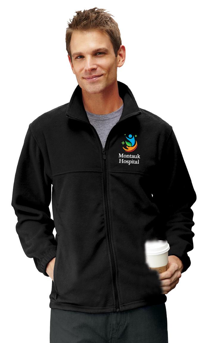 • 12.4-oz., 100% polyester knit bonded to 100% polyester brushed-back fleece