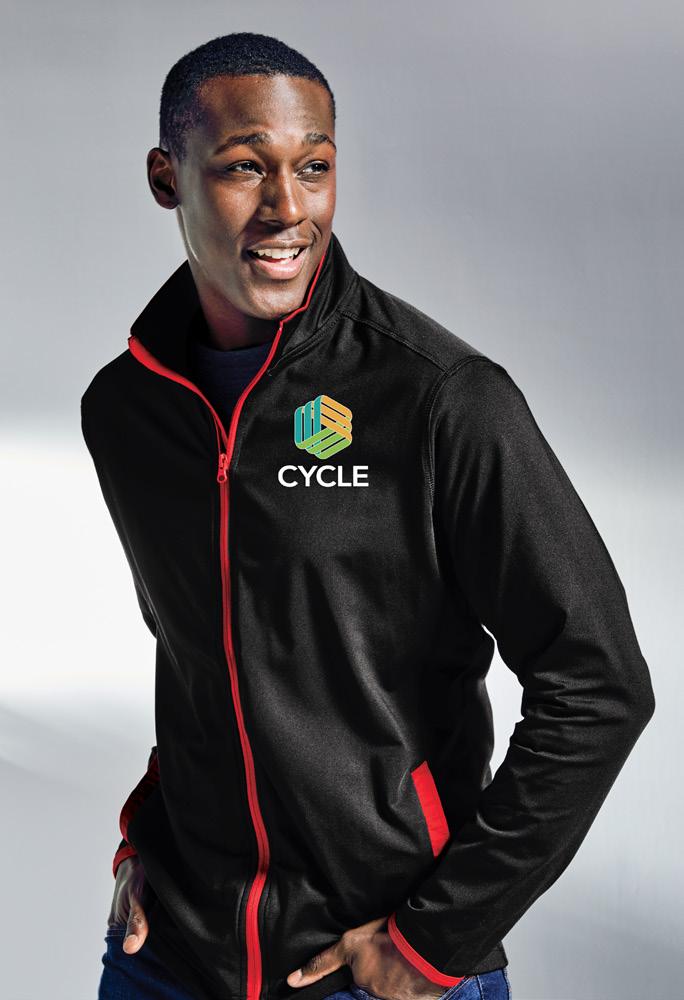 Keep moving in this moisture-wicking, soft-brushed jacket that’s flexible and features hits of contrast color throughout • 6.8-oz., 90% polyester / 10% spandex jersey