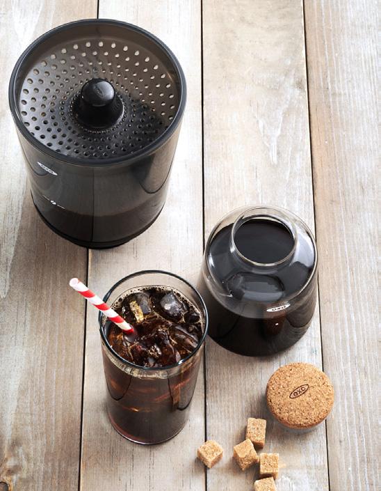 • Brew for 12-24 hours on counter or in fridge, then place the brewer onto the glass carafe to drain