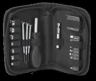 • Includes: screwdriver handle, screwdriver extender, 10 assorted screwdriver bits (with socket adapter), 7 sockets, 3 mini screwdrivers, and a 40"tape measure; Note: bit sizes clearly marked for easy identification