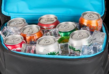 • Large zippered main compartment with heat-sealed, blue PEVA lining and thick foam insulation