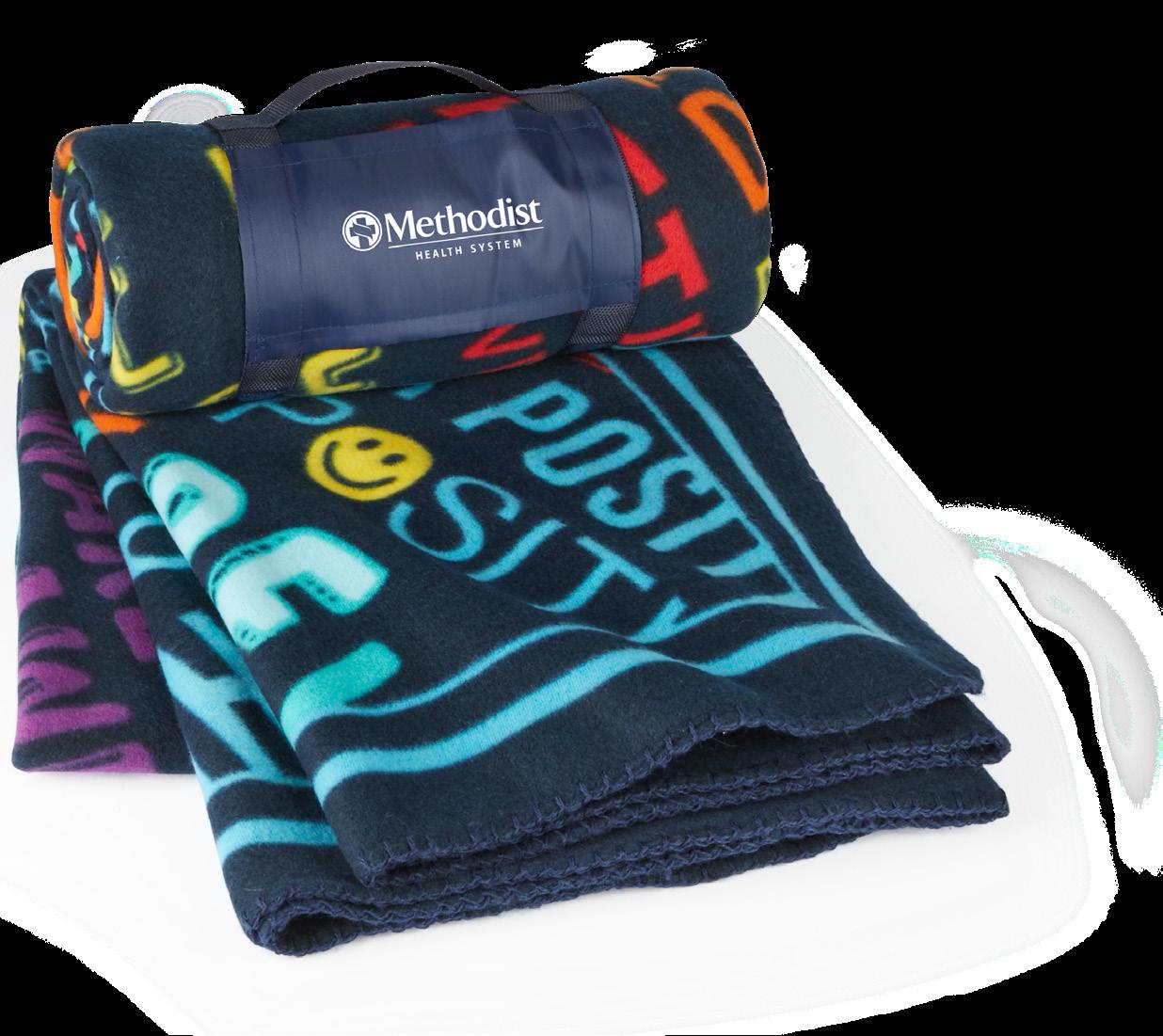 • Available in blue or black, each with our design or your one- or full-color personalization