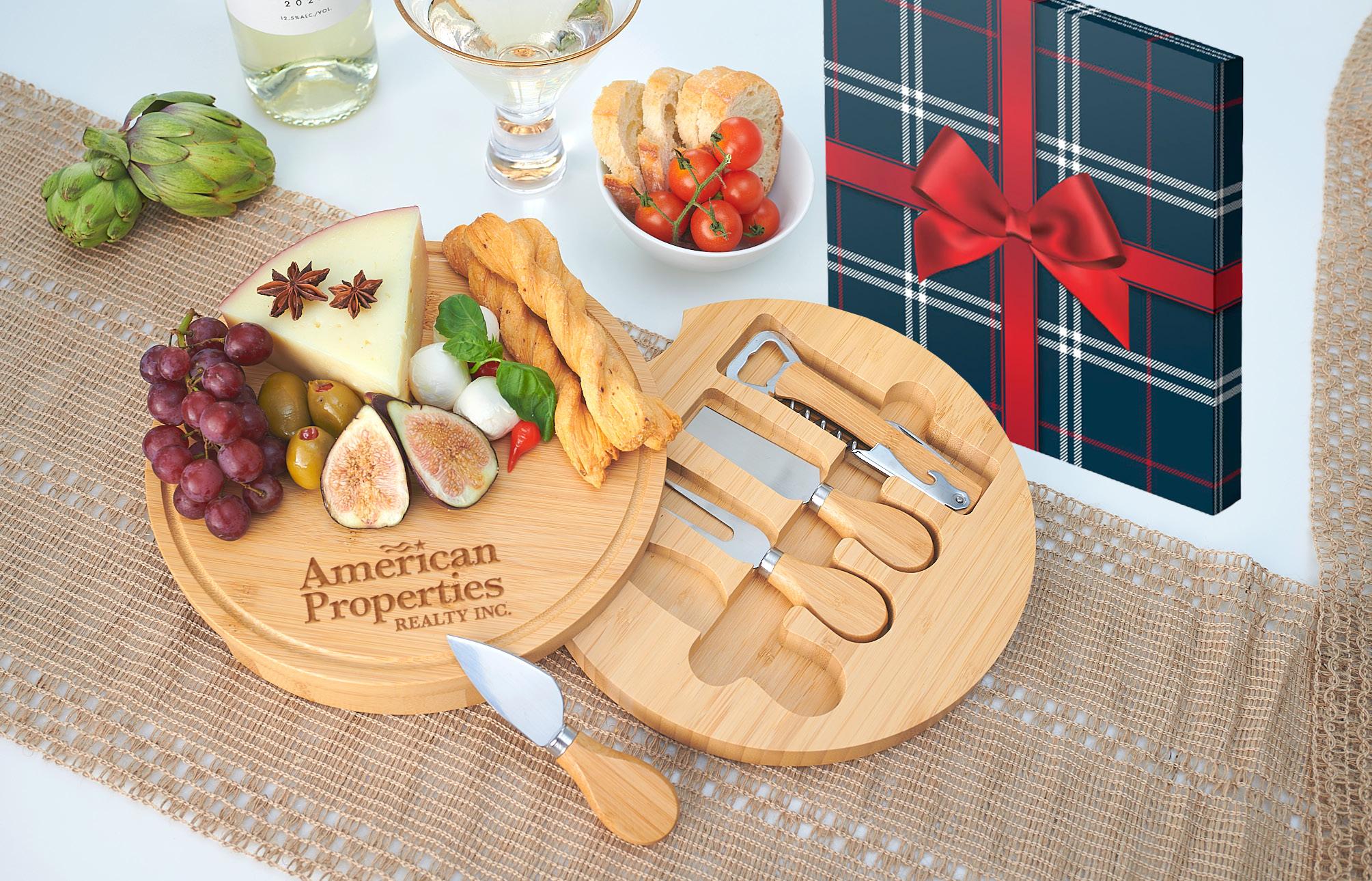 5-Piece Wine & Cheese Swivel Bamboo Charcuterie Board in Holiday Gift Box GNP-4745