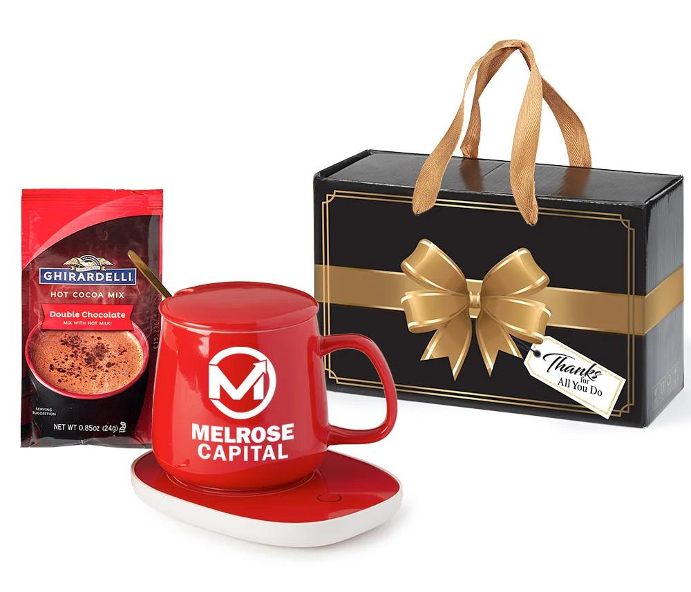 Red Ceramic Mug & Warmer with Hot Chocolate Gift Set in Holiday Gift Box