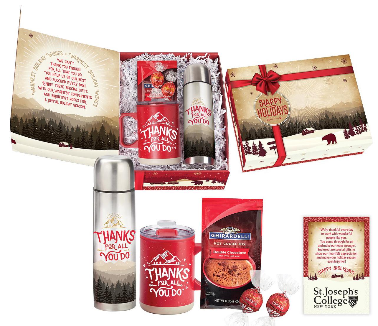 • The 3-piece gift set includes Sonoma 12 oz. Stainless-Steel Mug, a packet of Hot Cocoa Mix, and a S'mores Treat Pack – plus a personalized appreciation card