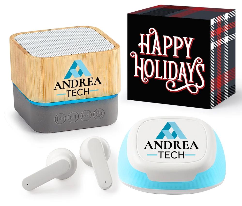 Bamboo Bluetooth® Wireless Speaker & Wireless Earbuds Gift Set in Holiday Gift Box