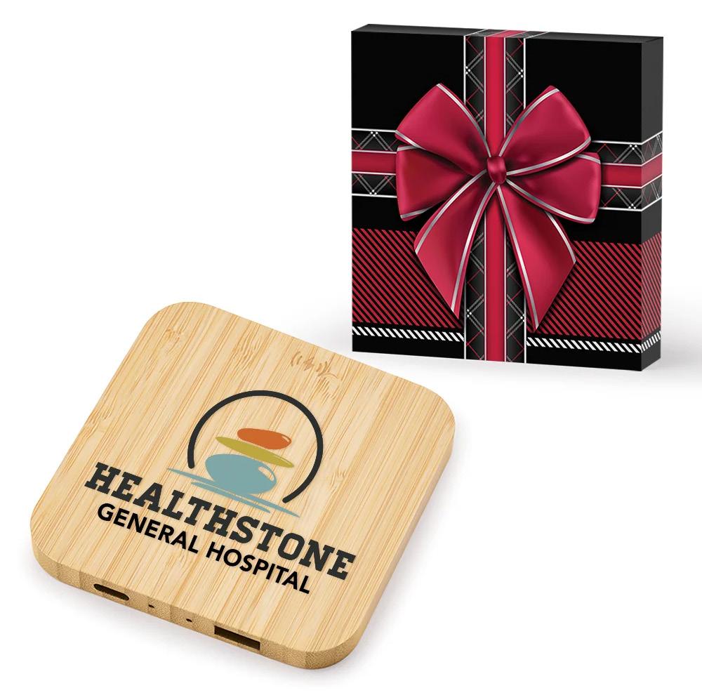 Bamboo Wireless Charging Pad with Dual Ports in Holiday Gift Box