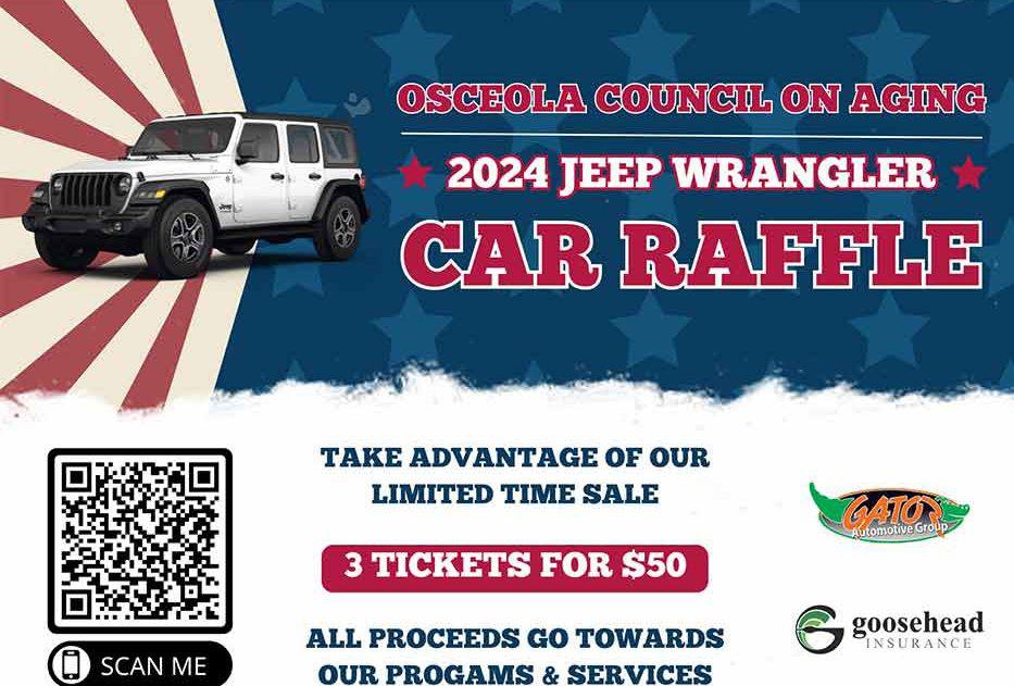 The Osceola Council On Aging has revved up its highly anticipated 4th Annual Car Raffle Fundraiser, an exciting event that promises to make dreams come true for both the lucky winner and the local senior community. The 4th Annual Car Raffle Fundraiser is a testament to the OCOA’s commitment to making a lasting difference in the lives of seniors, and brings together the community, local businesses, and philanthropic individuals in a spirit of generosity and camaraderie. This year’s lucky ticket will be drawn 30 minutes prior to 12:00 p.m. on Friday, December 29, 2023.