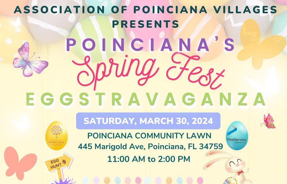 Mark your calendars! The Association of Poinciana Villages Spring Fest Eggstravaganza is set to delight families on March 30 from 11:00 a.m. to 2:00 p.m. at the Poinciana Community Lawn.