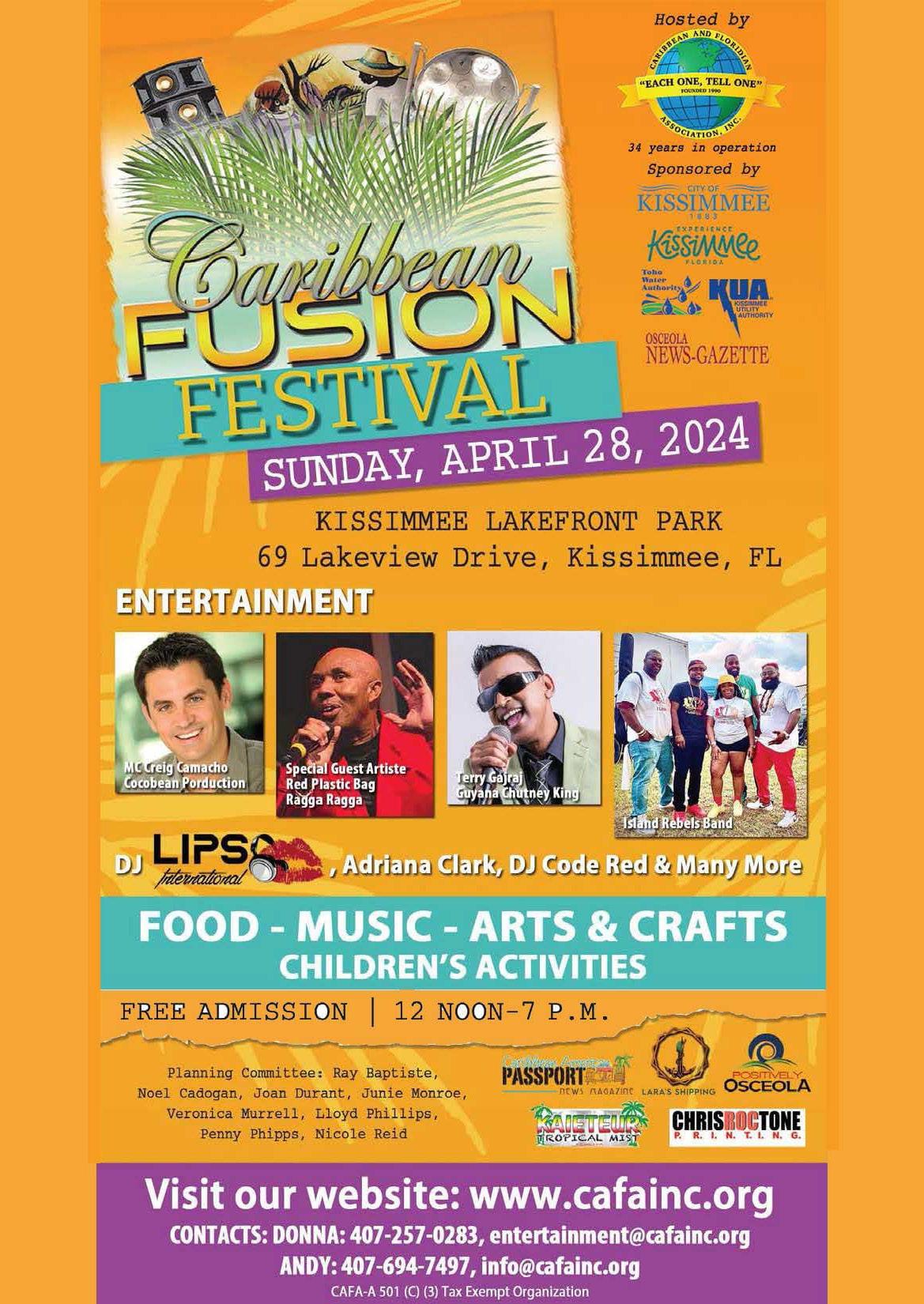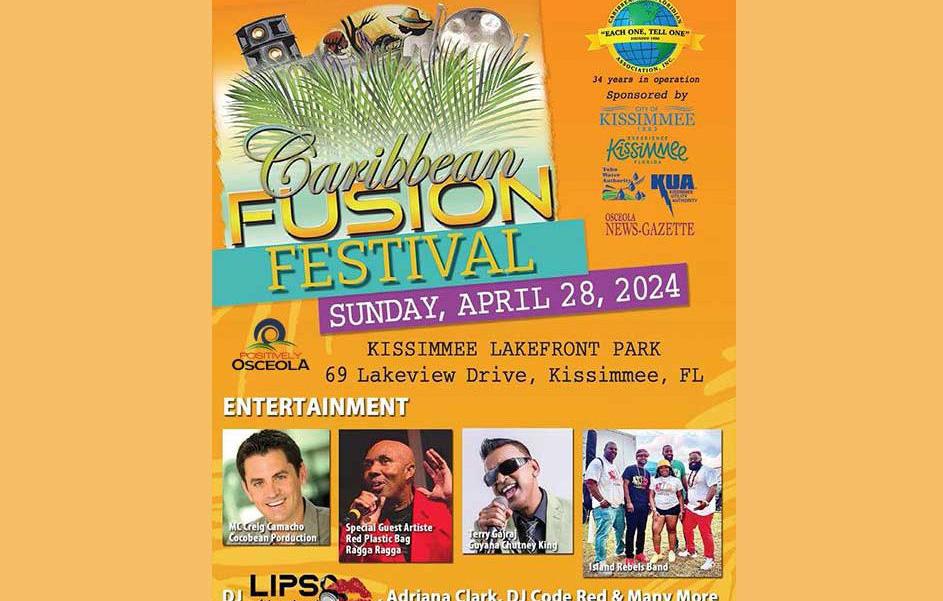 Experience the vibrant celebration of Caribbean culture at the 2024 Caribbean Fusion Festival, happening Sunday, April 28th, from 12 to 7 PM at Kissimmee’s Lakefront Park.