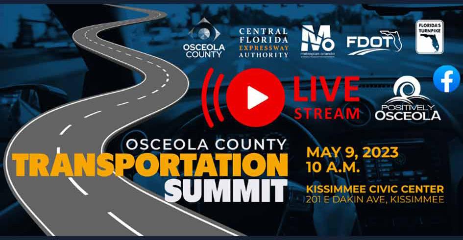 Osceola County will host an Osceola County Roads Summit this morning at the Kissimmee Civic Center at 10.a.m. in partnership with the Central Florida Expressway Authority, the Florida Department of Transportation District 5, Florida’s Turnpike Enterprise and MetroPlan Orlando. The summit aims to showcase and explain the County’s recent collaborations with these agencies to bring about significant improvements to the County’s transportation infrastructure. The summit will be LIVE streamed on Positively Osceola’s Facebook page.