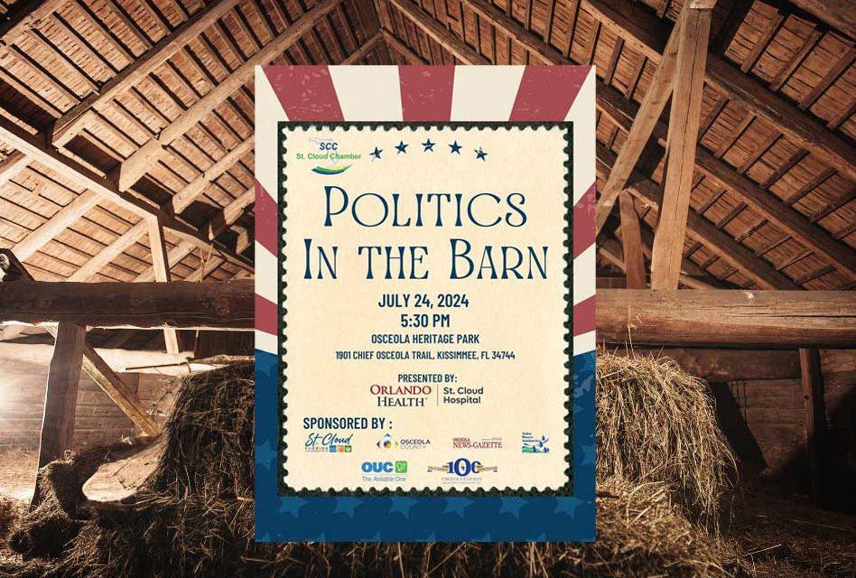 The St. Cloud Greater Osceola County Chamber of Commerce has announced that their Politics in the Barn event will take place at Osceola Heritage Park Event Center in Kissimmee on July 24 from 5:30 – 8:30 p.m. This event provides a unique opportunity for constituents to meet and greet candidates running in the 2024 election in Osceola County.