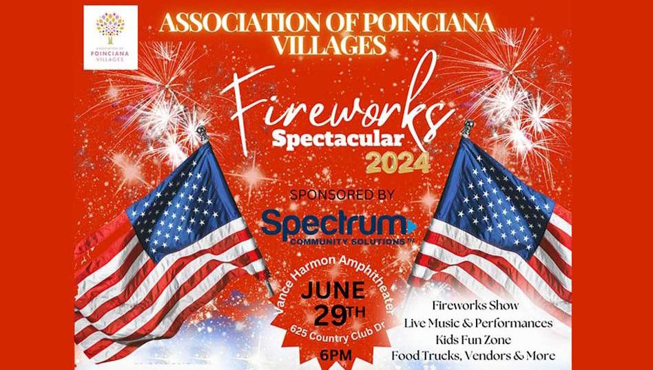 The Association of Poinciana Villages is gearing up for its 2024 Fireworks Spectacular, taking place on Saturday, June 29, from 6 p.m. to 10 p.m. at the Amphitheater at Vance Harmon Park, located at 625 Country Club Drive in Poinciana. This event, free and open to the public, promises an evening filled with entertainment and community spirit.