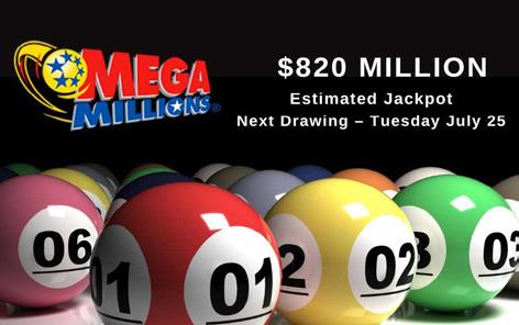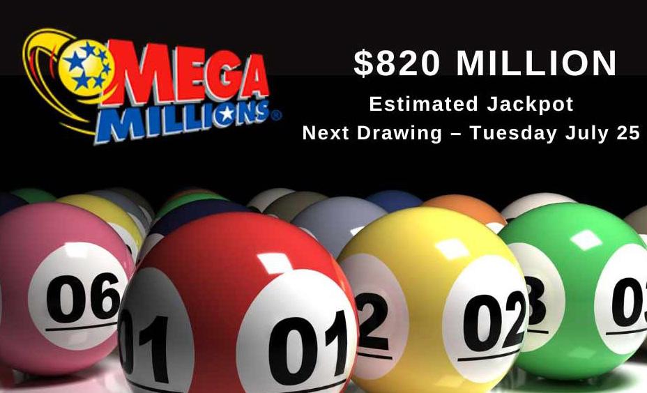 The Mega Millions® jackpot continues its upward march through the month of July, with an estimated prize of $820 million ($422.0 million cash) on tap for the next drawing on Tuesday, July 25. The big prize keeps growing after no ticket matched all six numbers drawn Friday night. The winning white balls were 29, 40, 47, 50 and 57, plus the gold Mega Ball 25.