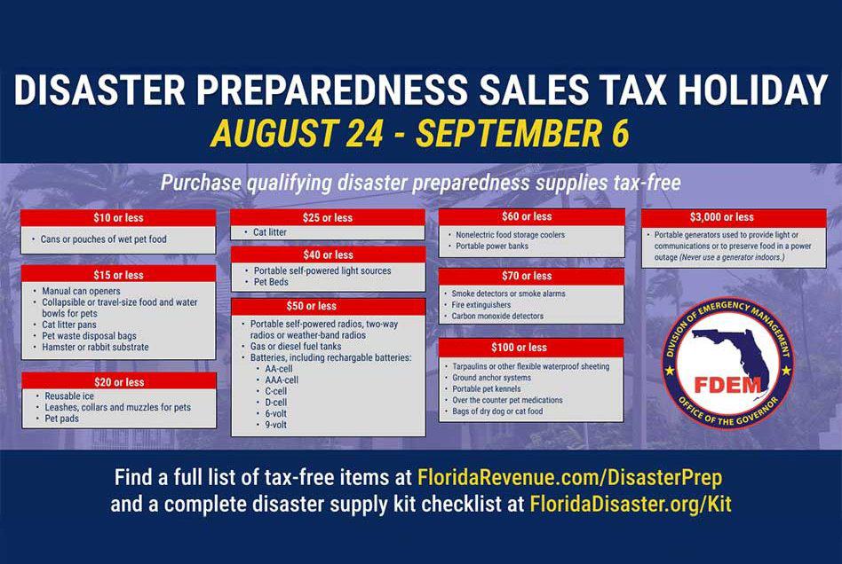 This sales tax holiday covers a wide range of items crucial for disaster preparedness, including: