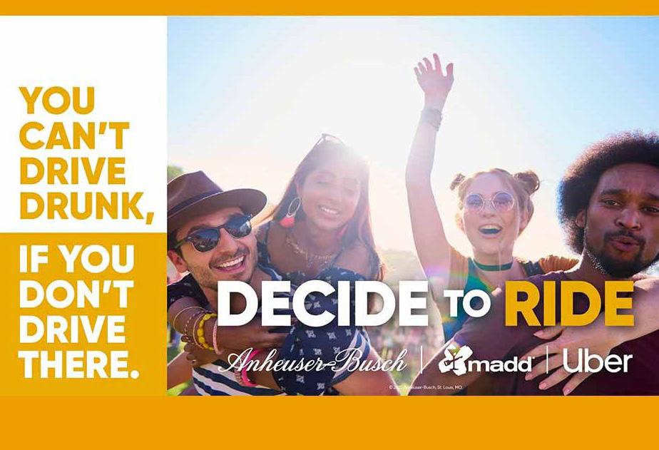 Anheuser-Busch, Mothers Against Drunk Driving, and Uber, have launched a joint campaign on college campuses with the aim of preventing drunk driving on football game days this fall, called Decide to Ride!