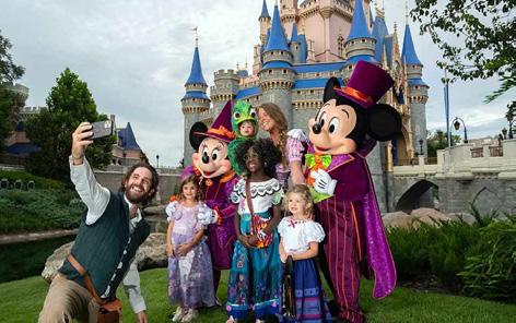 Rhett, his wife Lauren Akins, and their four daughters dressed up in costumes inspired by Disney films “Tangled” and “Encanto” and posed with Mickey Mouse and Minnie Mouse in their Halloween best during an evening full of festive fun at Magic Kingdom Park on Sept. 19, 2023.