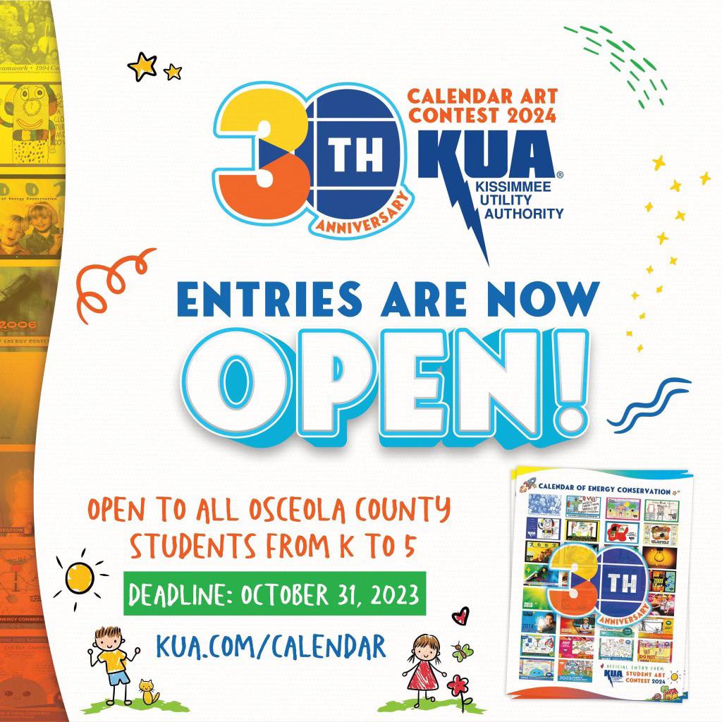 Kissimmee Utility Authority invites Osceola County students to showcase their artistic expression to promote energy conversation in the utility’s 30th Annual Calendar Art Contest.