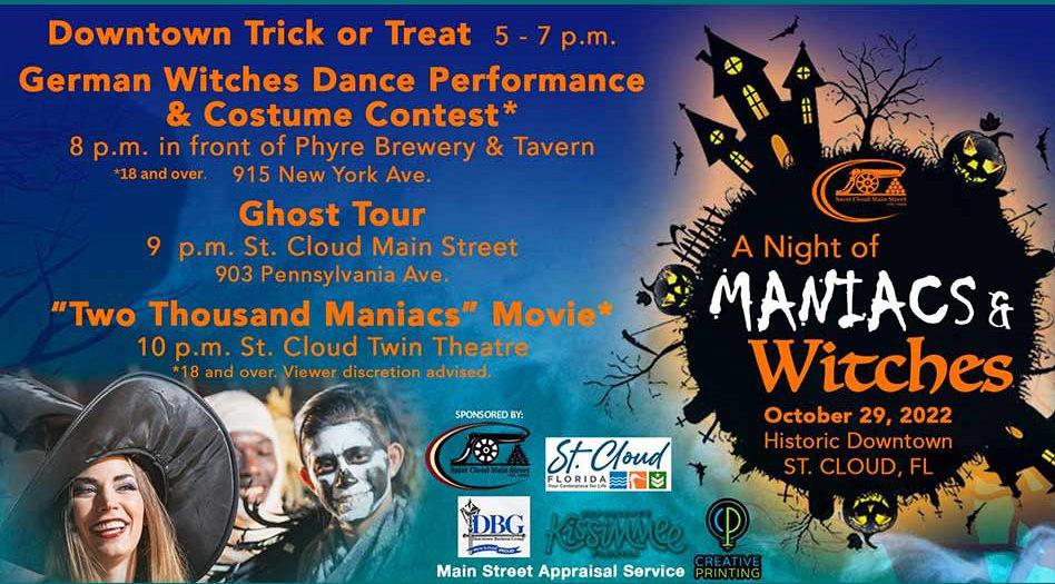 St. Cloud to host trick or treat event 5-7pm October 29, broom/witch dancing contest at 8pm, ghost tour at 9pm, 2000 maniacs movie at 10pm