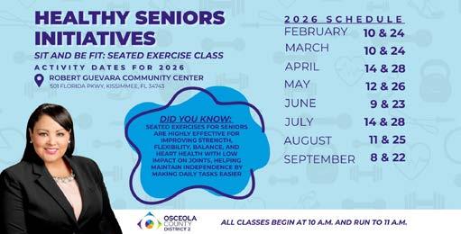 Osceola County Commissioner Viviana Janer, who represents District 2, is inviting senior residents to prioritize their health and independence in 2026 through Sit & Be Fit, a free, low-impact seated exercise program designed specifically for adults ages 55 and older.