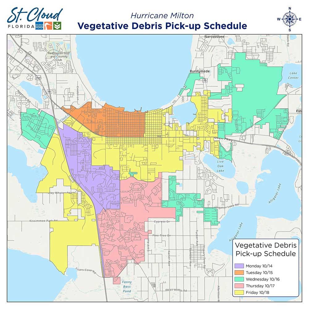Starting Monday, the City of St. Cloud will begin collecting yard debris left behind by Hurricane Milton. You can refer to the map to see which day city crews will be in your area. The city is asking residents to cut any yard debris to no longer than 4 feet and stack it at the curb. There’s no charge for this storm debris pickup.