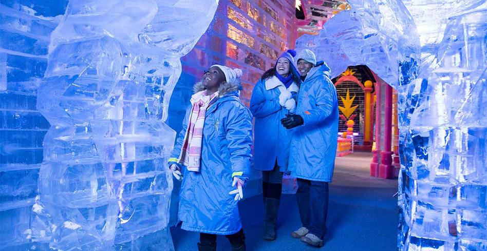 Crafted from over two million pounds of ice, the larger-than-life sculptures and displays are hand-carved by skilled artisans and showcase scenes from classic holiday stories and winter landscapes. Set within a stunning, snowglobe-inspired exhibit, the ICE! attraction is maintained at a brisk 9°F, so guests are encouraged to bundle up to fully enjoy the frosty spectacle.