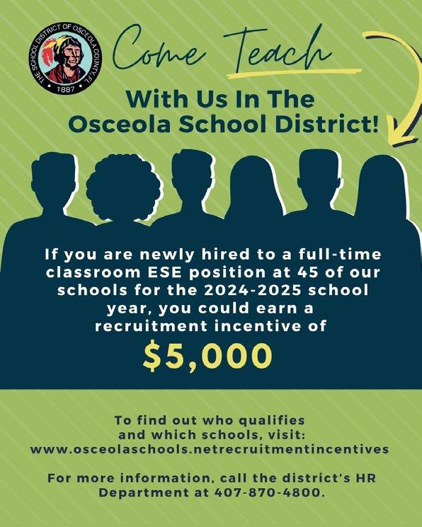The Osceola School District is inviting parents and guardians to attend the upcoming Open House at their child’s elementary, middle/K-8, or high school. This event is a great opportunity to gain valuable insights into the curriculum and school environment. Attendees will have the chance to explore the campus, meet faculty, staff, and administrators, and learn more about the district’s highquality academic programs and extracurricular activities.