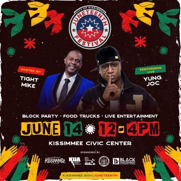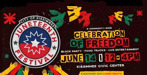The City of Kissimmee invites the community to come together in celebration of freedom, heritage, and unity at its annual Juneteenth Festival on Saturday, June 14, from 12:00 p.m. to 4:00 p.m. at the Kissimmee Civic Center.
