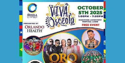 The Osceola Chamber’s signature Hispanic Heritage Month celebration, Viva Osceola, returns Sunday, October 5 from 1:00–7:00 p.m. at the Kissimmee Lakefront Festival Lawn. Admission is free. This year’s festival is presented by Orlando Health, brought to you by Experience Kissimmee, and sponsored by KUA.