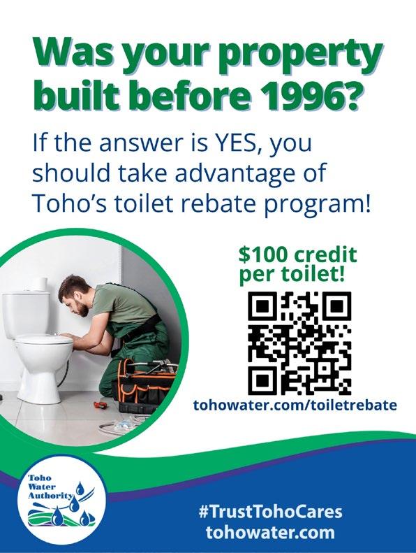 Toho Water Authority (Toho) is encouraging residential and commercial customers to take part in its Toilet Rebate Program, a water-saving initiative aimed at lowering water bills and promoting sustainability through the replacement of older, inefficient toilets.