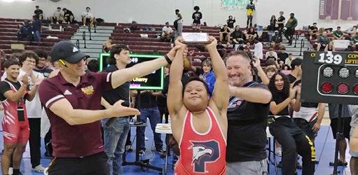 When Marvin Cherry stepped to the platform to attempt a clean-andjerk lift, practically every competitor gathered around the platform and shouted encouragement as he successfully completed the lift. Cherry, is a Poinciana special education Senior with Down’s Syndrome.