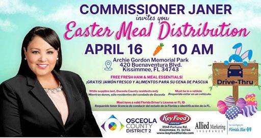 Osceola County District 2 Commissioner and Chairwoman Viviana Janer is inviting the community to a special Easter Drive-Thru Meal Distribution on Wednesday, April 16 at 10 a.m. at Archie Gordon Memorial Park, located at 420 Buenaventura Blvd. in Kissimmee.
