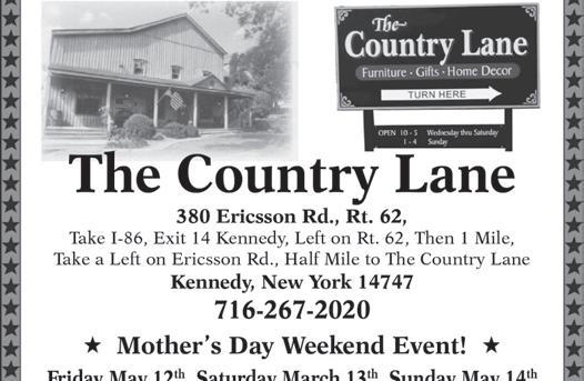 facility will not be given. Individual appointments are available throughout the week by leaving a message at 716 672-1991; press “1” for dogs or “2” for cats. One must be 21 years of age or older to adopt a pet. The Cat’s Meow Boutique will be open for purchases by the public. For details, call 716 672-1991.