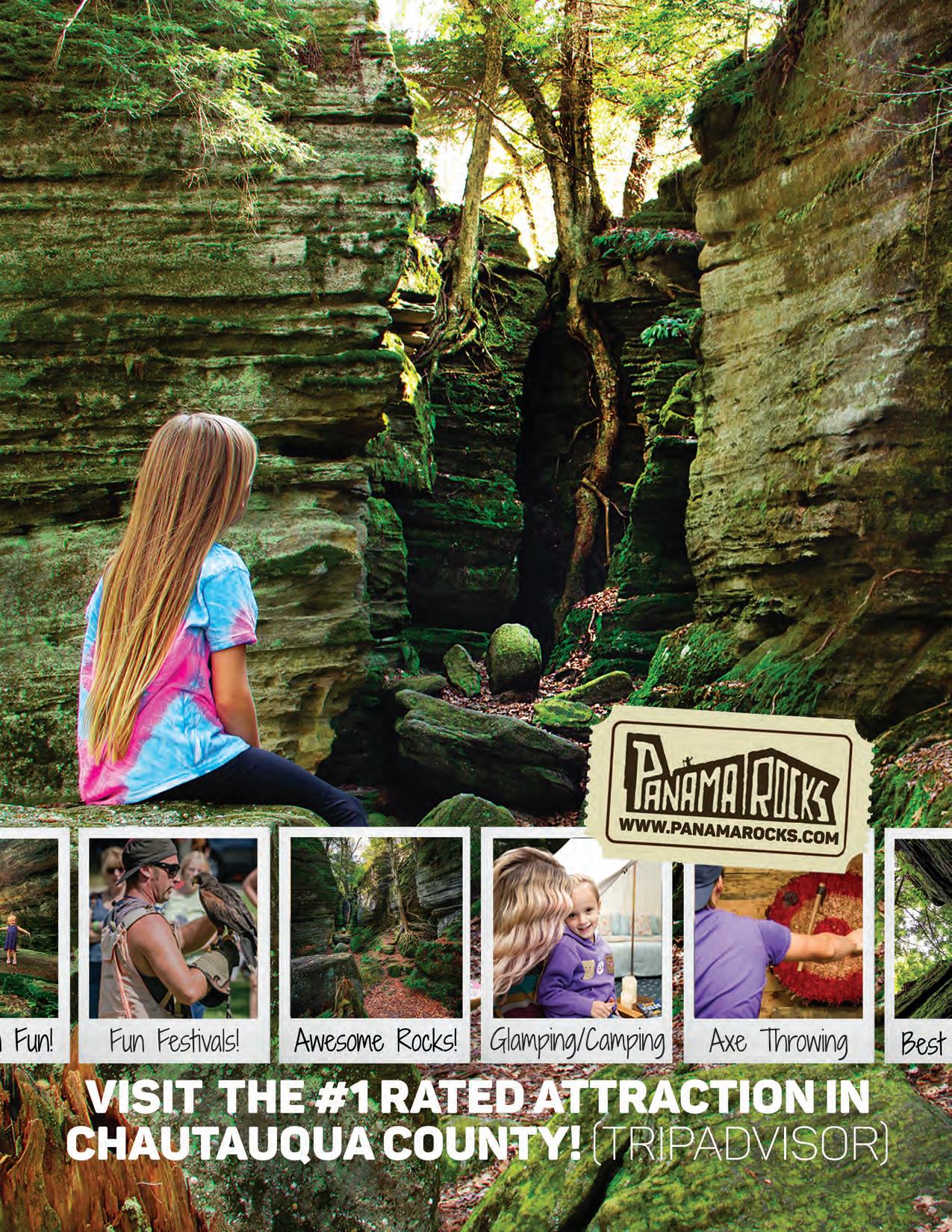 trail in New York State by the trip planning service Inspirock. In addition to being an amazing natural attraction, Panama Rocks offers glamping, camping, ax throwing, recreation hall rentals for events, and is host to two festivals.