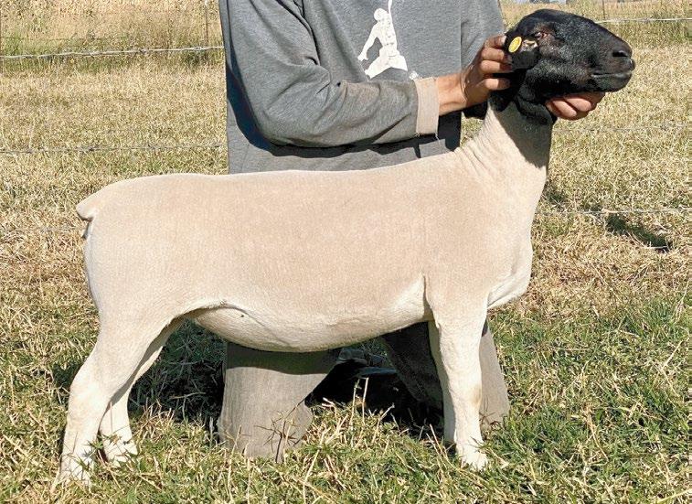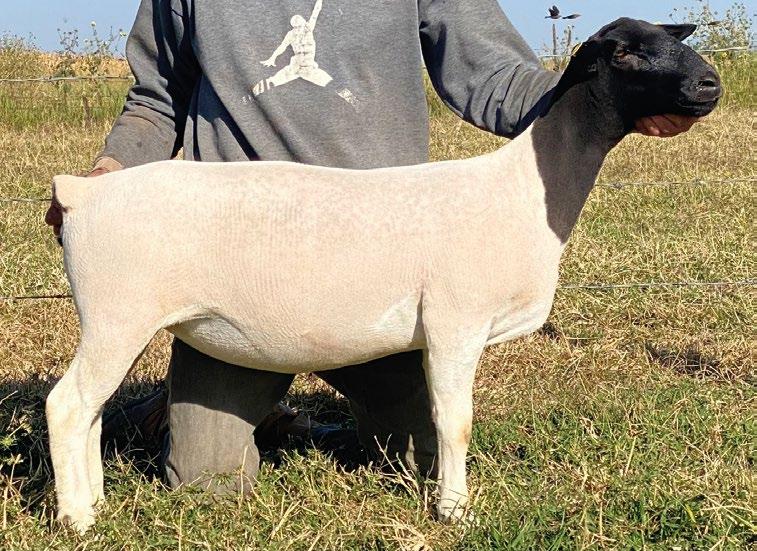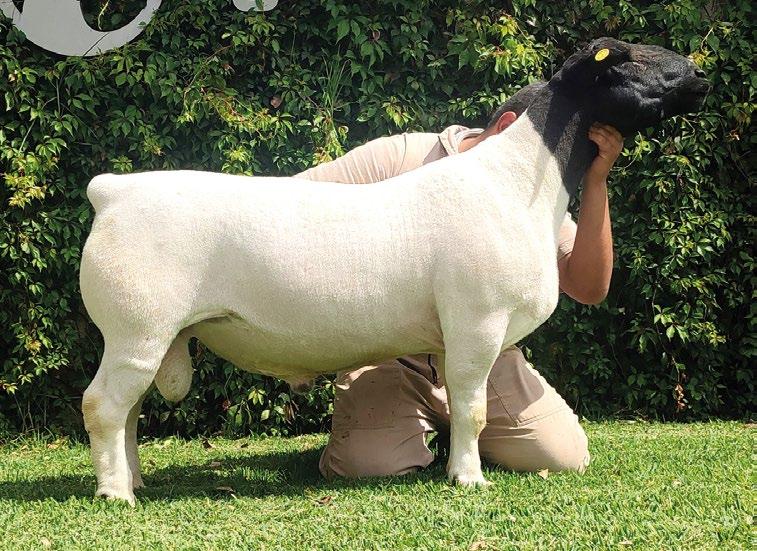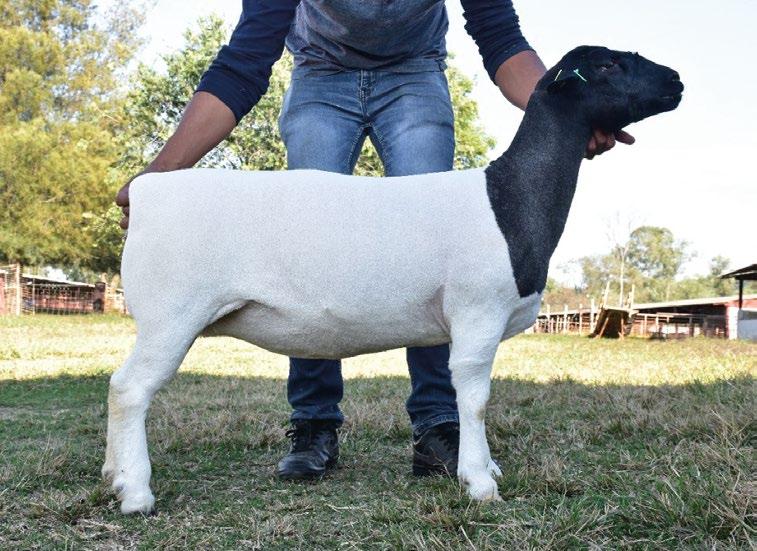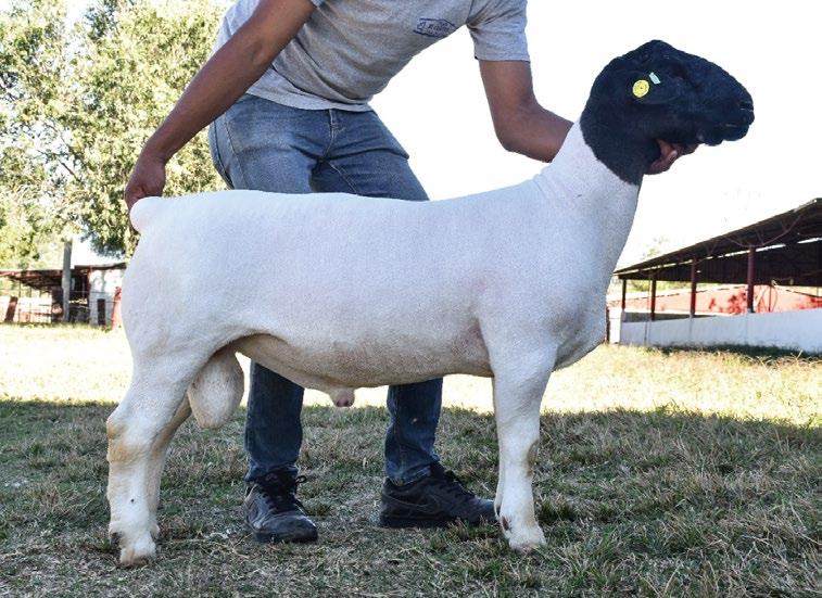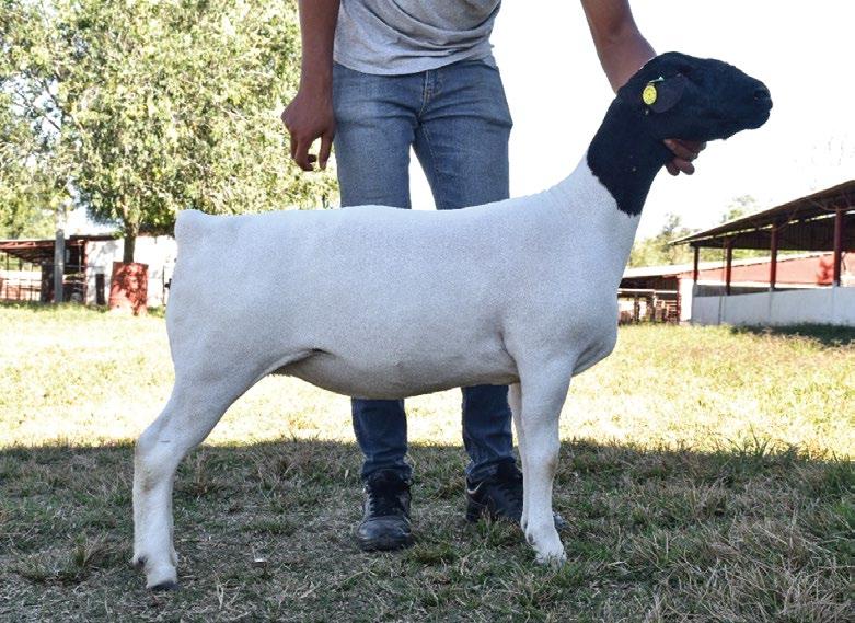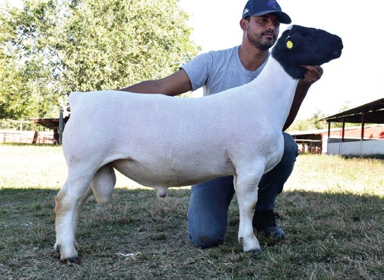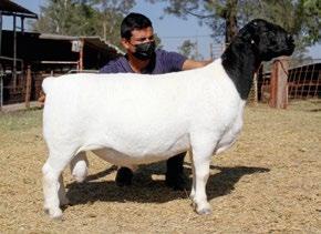 Hijo de Gran Campeona Nacional 2019 (Amanda) Mucho balance, corrección, largor y una cabeza muy fuerte y masculina. De lo que duele desprenderse. PADRE: CDA-5527-D ”ARDILLO” ABUELO: REF-101-X ABUELA: THC-6916-Y ABUELO: DELL-5530-D “30” ABUELA: CDA-5027-B MADRE: DPC-1312-E “AMANDA” DPC-2611-H “AMANDO” LOTE 91 T. CONCEPCIÓN: TE TIPO DE PARTO: SIMPLE AMANDO F. NACIMIENTO: 03 / 01 / 2020 P.N: 6.5 KG P.D: 28.3 KG P.A: 122 KG AMANDA 8 V A SUBASTA SUPREMA 2022 MACHOS DORPER · PAG. 56