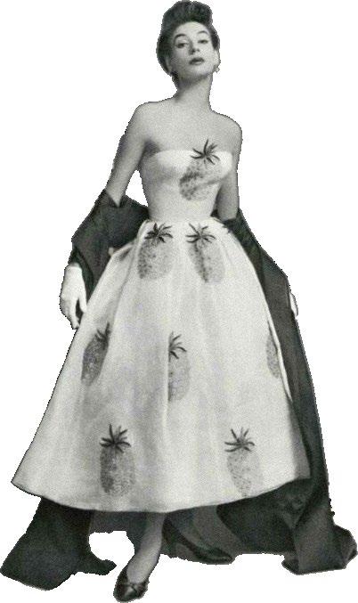 Estos mismos diseños, lucían sobre todo en vestidos de organdí blancos como el vestido Les Citrons, el vestido Les Tomates y el vestido de Nácar. El vestido de día Écossé, lleva la primera etiqueta que utilizó Givenchy.