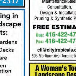46 | MARCH 2024 Colin Grant General contractor with over 35 years under his belt Carol Roberts Over 30 years of painting homes Joanne Sallay Helping people learn for 30 years Tom Day Keeping pipes and drains clear for over 26 years John Bell Adding colour to people’s homes for over 26 years Jennifer Maclean Beautifying area gardens for over 10 years Andrew Plum Fine Arts & Antiques Specialist for over 40 years English Painter with over 30 years of excellence O 416-422-3532 www.englishpainter.ca HomeStars Best of 2018 - 2021 Readers’ Choice 2020 e Do It A W HANDDYYM & Much Mor tionavenoR • a FBasemenrt • RthrBaeoom • tingainP • tionnsulaI • Taaping • all wyDr • T ll! AN e s ming/ tionsavno 4 147-962-36 BUILDERS 6 Serving GTA for over 40 years • Hardwood • Luxury Vinyl • Carpet • Carpet Tile : Gym, Entertaiment Centre, Computer Room With Highest Quality Installation withWth e e Sp be eci sa t li iz ne si tn al H le ar r d s w inoo td h R e es bt uor sa it n ioe n s , s! Stairs Re-Modeling and Custom Carpet Design SHOWROOM: 1170 Sheppard Ave. W. , # 29 www.tqf.cc • CALL: 416-665-6767 FULLSERVICEELECTRICIAN ● Service Upgrades ● Troubleshooting ● Ceiling Fans ● Pot Lights ● Lighting Designs ● LED Retrofits ● Nest Thermostats ● Pools / Hot Tubs ● Generators FREEESTIMATES & y Renovations (basement, kitchen, bathroom Masonr y, , Tiling, Painting, Radiant oor hea Carpentry (deck, repairs), Window replace Drywall (design, installation), Baseboard and trim work and much more 0 sonry.com ynr .com t ) ting men 647-726-003 www.ccsrenovationsandmas admin@ccsrenovationsandmason info@torontolawnmowing.ca FREE ESTIMATES! www.torontolawnmowing.ca 25 Years Experience! TORONTO LAWN MOWING SOLUTIONS • Lawn Mowing • Lawn Fertilization • Lawn Repairs • Garden Creations wnR ng Ups g G on L an U Spring Debris Cle awn Fertilizati Lawn Mowin arden Clean U Hedge & Shrub Trimmin SodInstallationandLa Repair p wn FR ATTE REE ESTIMA Sod Installation and La S runing tal P rnamen and O emoval ee R Tr dous Specialist in Hazar paula@paulayoga.ca • 416-891-2157 Do you want to practice yoga but you’re not sure how to get started? I can help you. With over 20 years of teaching experience I can help you create your ideal home practice. Call today! YOGA YOUR WAY PRIVATE LESSONS THE NEIGHBOURHOOD’S TRUSTED SOURCE FOR TRADES & SERVICES Next issue deadline: Mar 19th by 5 p.m. To book an ad call 416-250-7979 x270 or send an email to classifieds@postcity.com classifieds