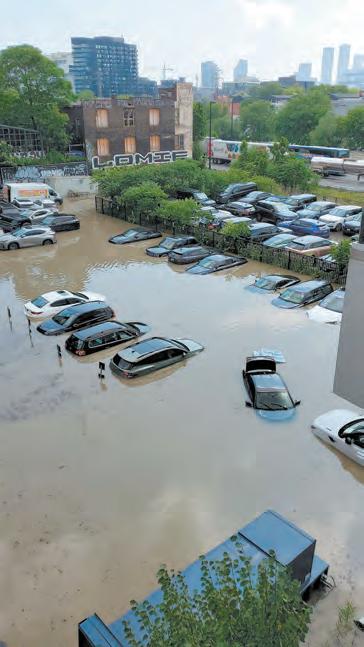 L-R: Mass flooding, forest fire smoke and extreme rain are results of a climate crisis that is only beginning