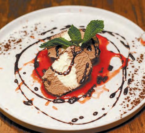 excellence in 2018, and the new outpost carries forward that commitment to classic Italian cooking. The dinner menu focuses on fresh, high-quality ingredients — from bright salads like the Mista or the pear-andgorgonzola Pera to indulgent starters like beef carpaccio, with truffle and shaved Parmigiano, or a creamy burrata plate with prosciutto and pistachio crumble.
