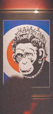 Perhaps the most buzzworthy detail of the new space is tucked inside one of the powder rooms, where an authentic Banksy Monkey Queen hangs in all her irreverent glory. This 2003 limited edition print — one of just 750 — still turns heads on the auction circuit, fetching CA$20,000 to $35,000. The Banksy is displayed safely between two panels of quarterinch shatterproof glass, mounted securely on the wall, making it as much a statement piece as the restaurant itself.