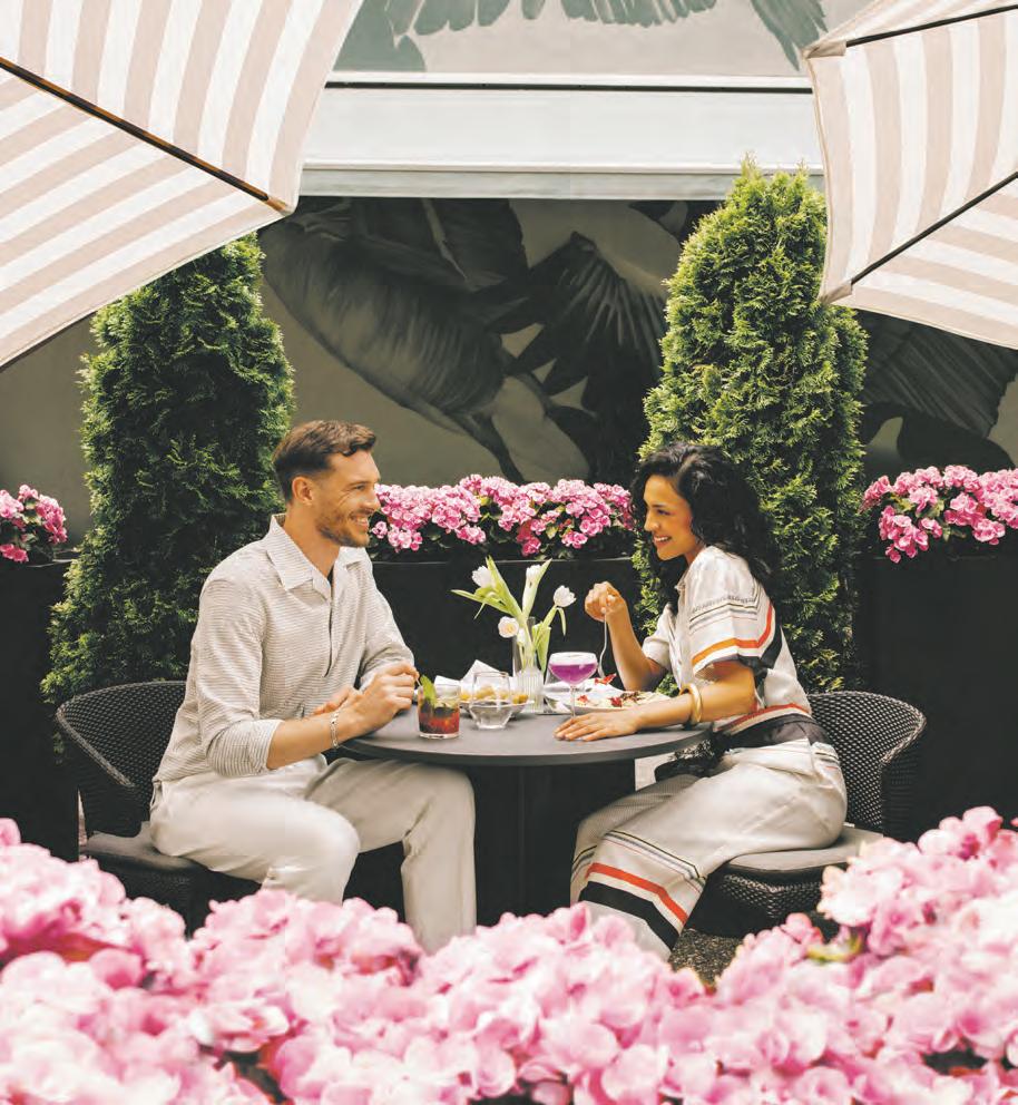 The retractable roof transforms the restaurant into an indooroutdoor garden space year-round.