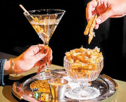 The dish pairs fried nuggets with royal sturgeon caviar, sour cream and an apricot sweetand-sour sauce. The caviar matters here. Royal sturgeon is smooth and buttery, which works with a salty, fried snack instead of competing with it.