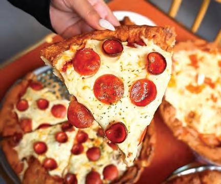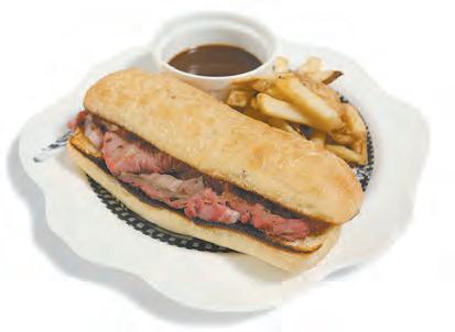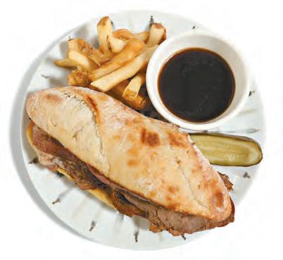 cultural inspirations, turning each baked potato into a creative, mouth-watering experience. The chili con carne comes piled high with slow-simmered beef, beans, cheddar, sour cream and cilantro. Shuk Style draws inspiration from bustling Middle Eastern markets, with pulled chicken, hummus, pickled cabbage and tahini. The veggie option is loaded with roasted vegetables, beet salad, olives and tzatziki. Even pop culture makes an appearance: the Schrute Farm, named for Dwight Schrute from The Office, nods to his beet obsession with a potato topped with pulled pork, coleslaw and crispy onions.