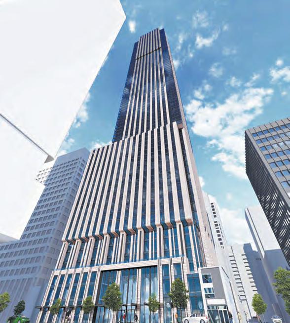 At the northwest corner, an 18-storey tower would be atop a flatiron podium. At the south end of the development site, two towers 49 and 45 storeys tall would share a five-storey podium. At the northeast side there would be a 49-storey tower with a 14- and nine-storey stepback podium.