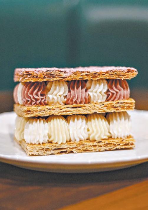 I didn’t have to order the $18 add-on dessert. Could not resist. Mille feuille! The most classic of French desserts. More important to the French cooking lexicon than soufflés and charlottes. Mille feuille is, figuratively, a thousand leaves of crispy puff pastry layered with whipped cream and other delectables. I’ve eaten this raspberry mille feuille prepandemic at Alobar and been seduced by its sensual creamy crispness. At home? Not quite as crisp — inevitably — but still magnificent. Whipped cream, pastry cream, raspberry coulis and raspberry cream, layered with mostly still-crisp pastry.