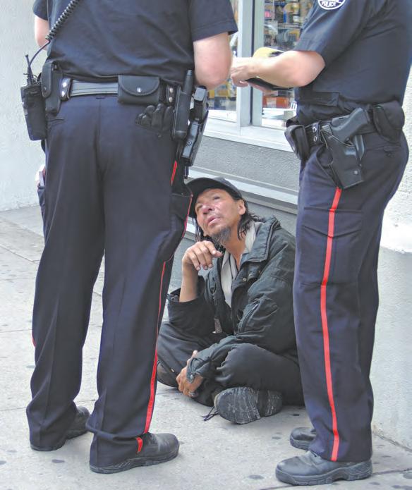 Imagine you are a police officer who has been called to an incident in a convenience store. You arrive and it feels like Kim’s Convenience : the middle-aged owner of the shop has been hit in the face after he tried to stop someone who was putting items inside his coat. He describes the suspect to you: not shaven, a red ball cap, a long messy coat, maybe 30 or 35 years old and not too clean. He took off down the street, probably to the shelter a few blocks away. It’s a classic case of an incident that makes you feel unsafe in the community. You get in your police car and sure enough you find him without much trouble. You take him to the station and get all the details: he’s living in a shelter, he’s been homeless for eight months after losing his job and then his place to live. He had a half bottle of rye in his pocket, he’d stolen a package of wieners and some chips, and he admits he hit the other guy in the nose. It seems to you he’s dealing with a lot of anger issues and he’s not too realistic about his future. You charge him.
